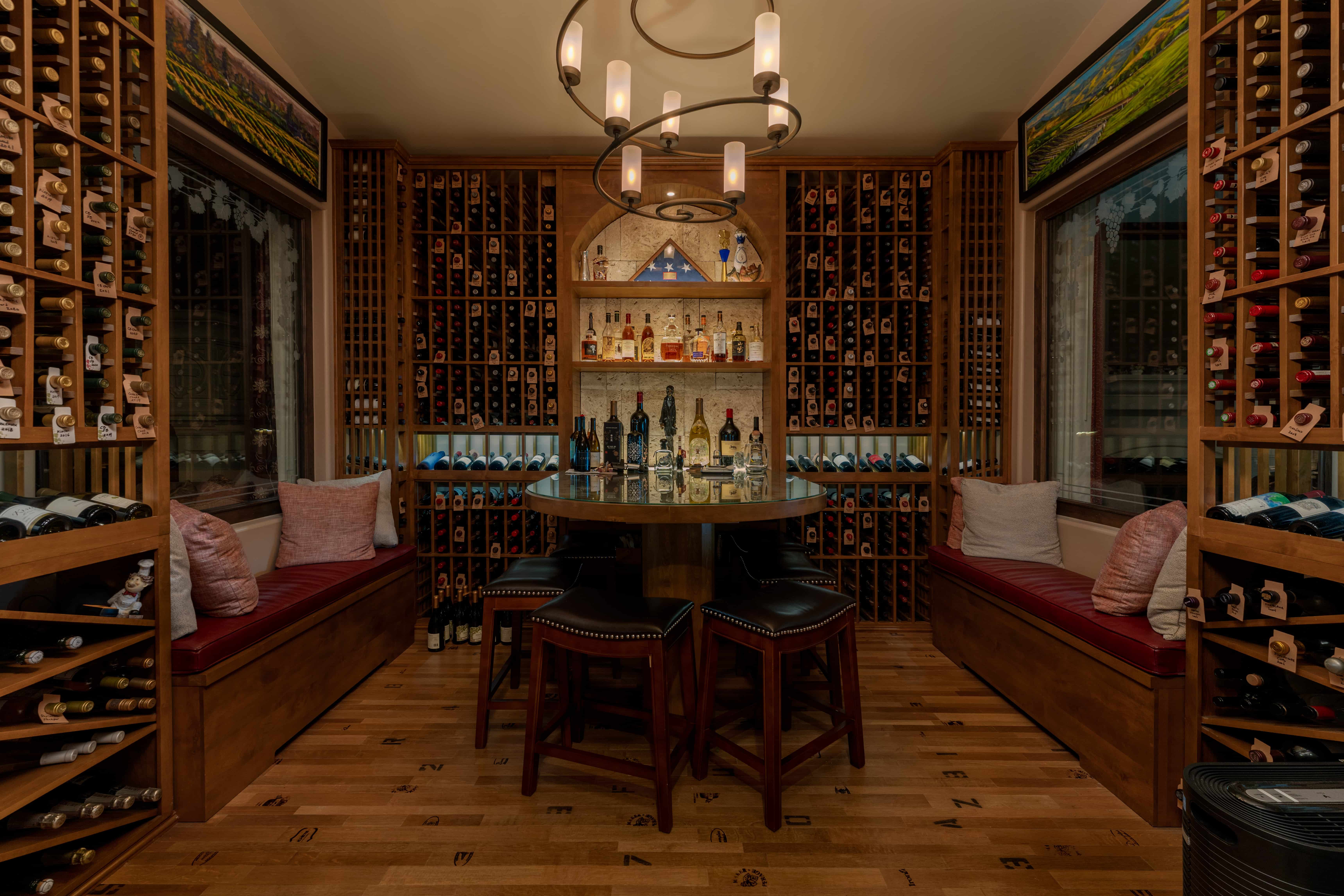 The stunning home wine cellar in Summerlin, Las Vegas, boasts exquisite design elements, with the flooring standing out as a remarkable feature that demonstrates the dedication to craftsmanship and attention to detail.
